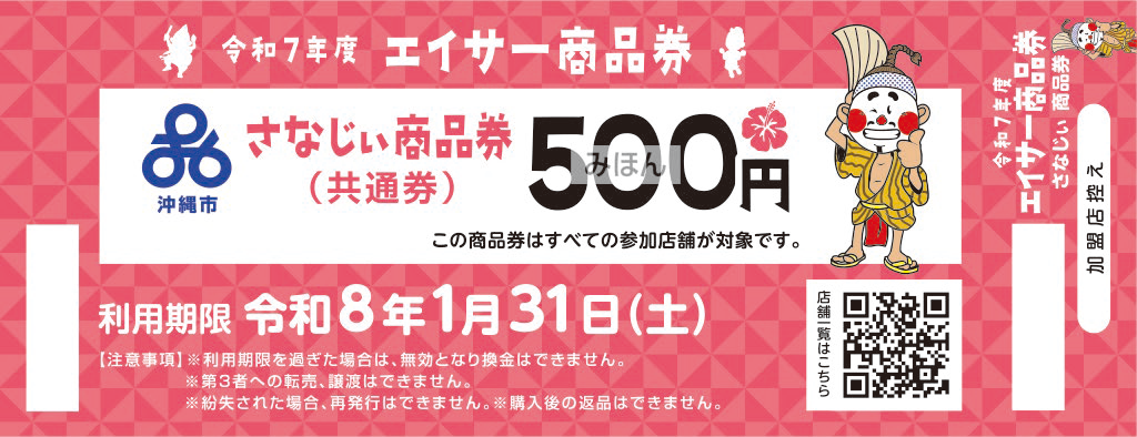 2025年10月14日より下記イメージのエイサー商品券(さなじぃ商品券)が