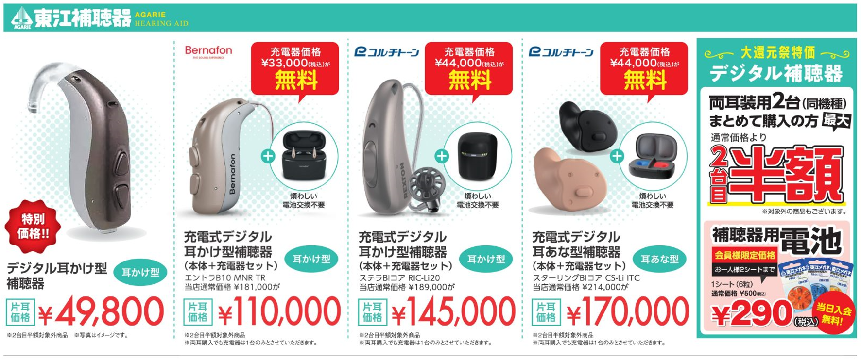充電式の最新のデジタル補聴器も取扱い!補聴器は、購入して使い慣れるまでが大切です。