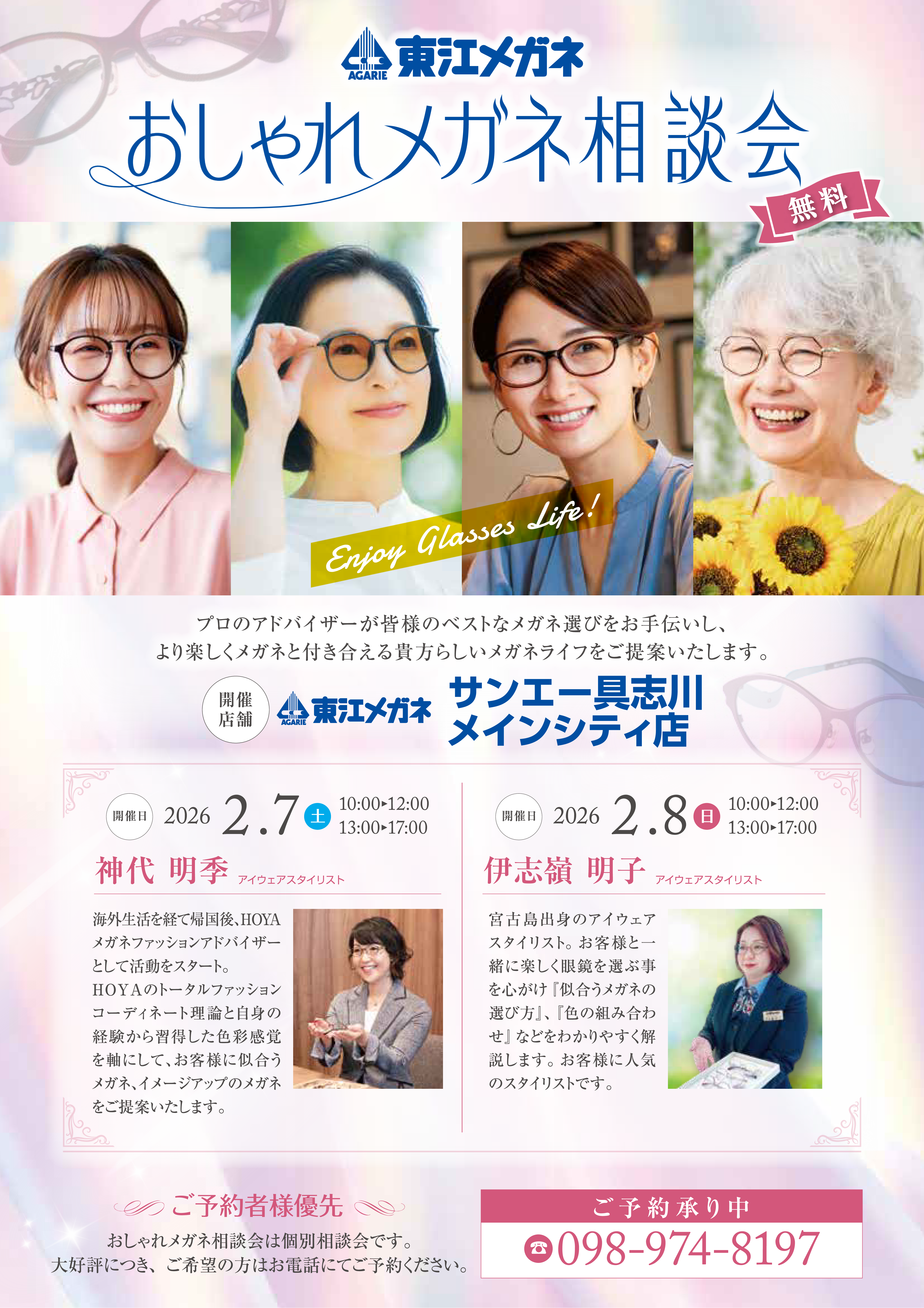 サンエー具志川メインシティー店で『おしゃれメガネ相談会』開催《予約制》