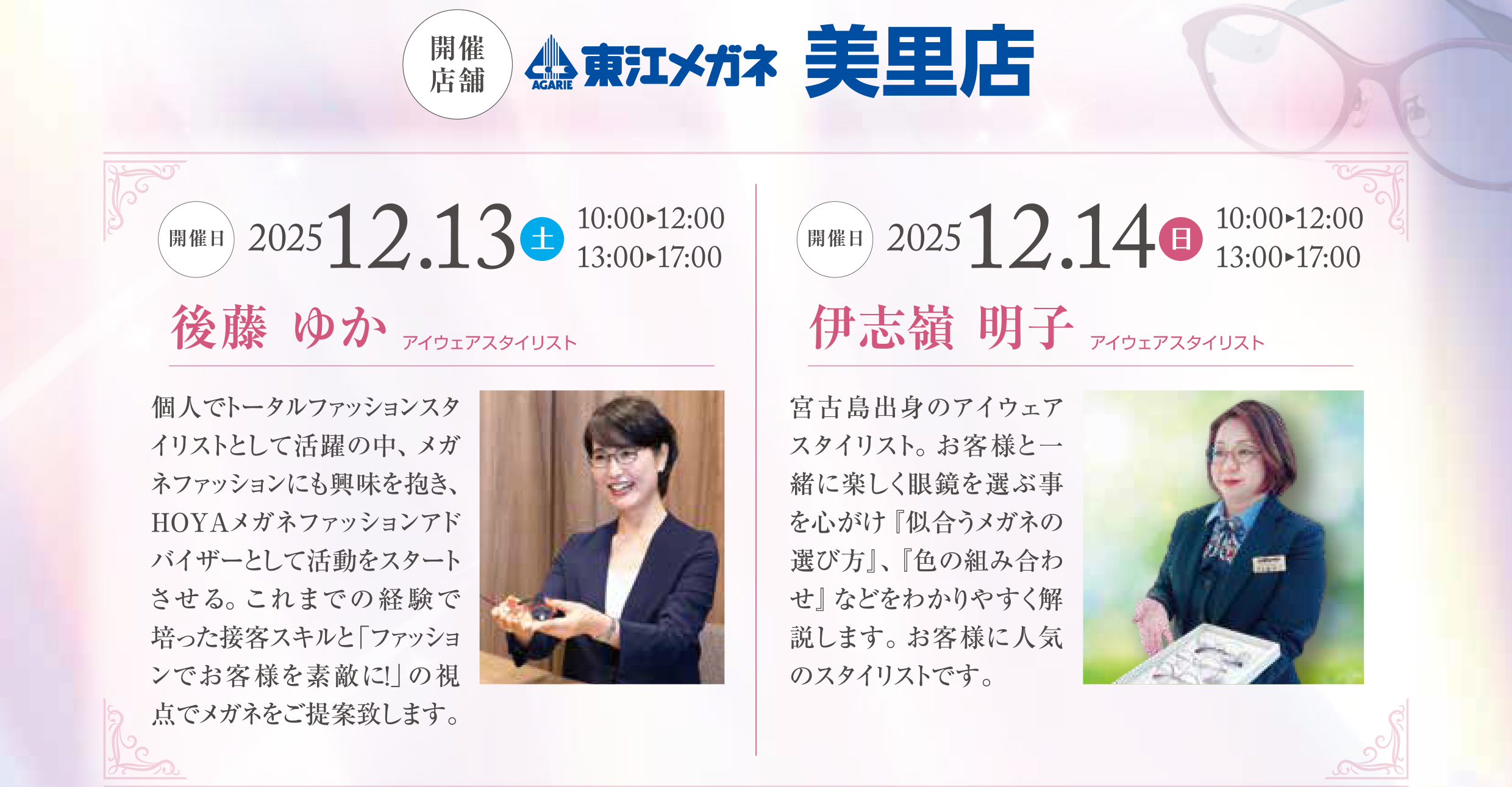 12月13日(土)にはこの日限定で、日本各地で「アイウェアスタイリスト」としてご活躍中の