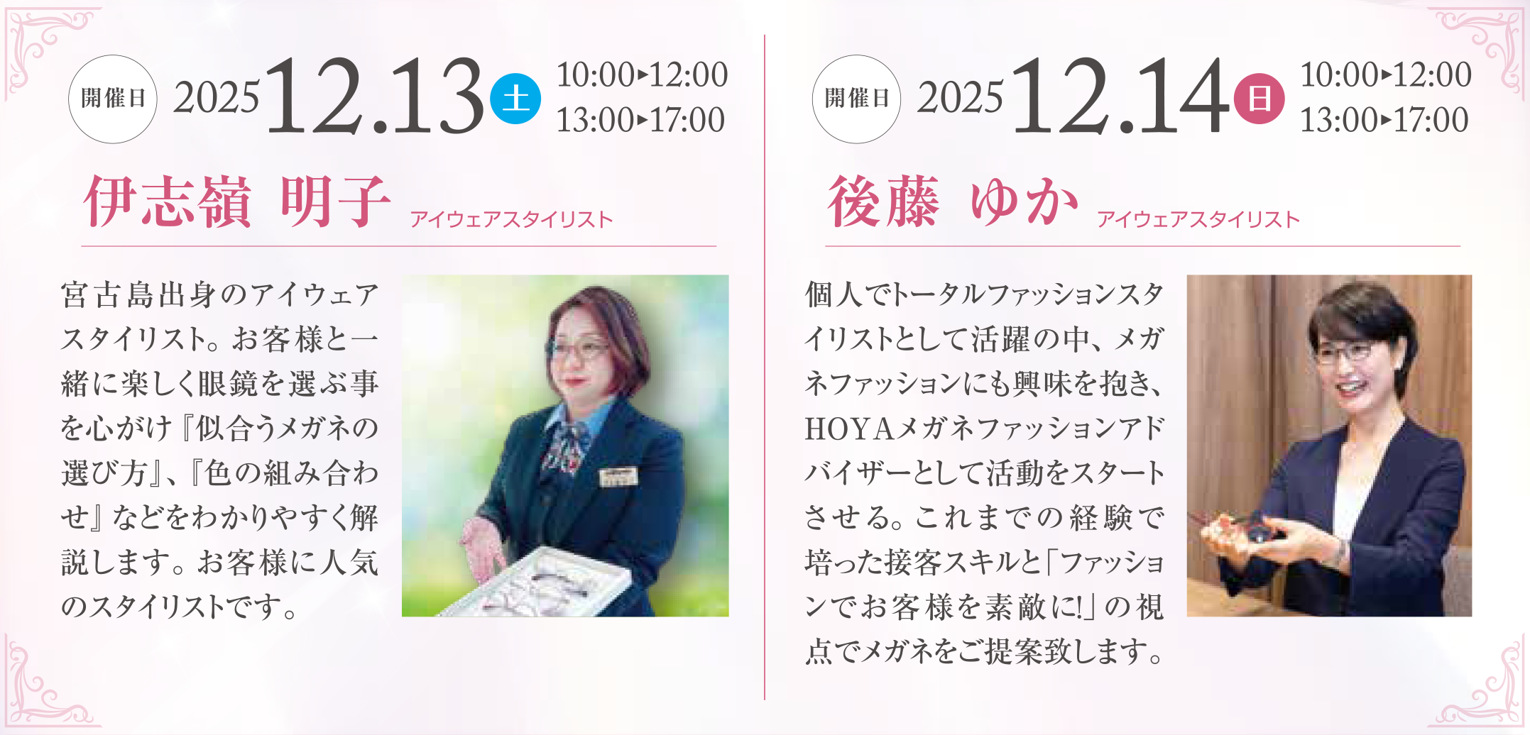 12月13日(土)は宮古島出身のアイウェアスタイリスト【伊志嶺 明子】さんを、
