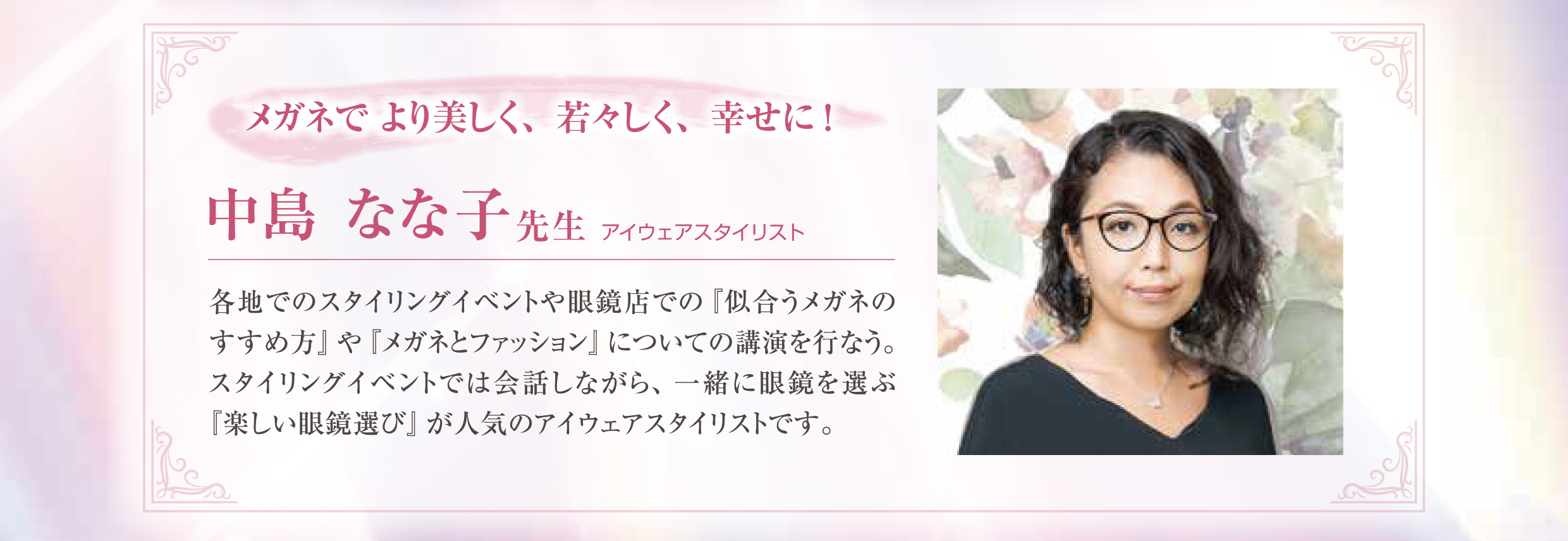 【中島 なな子】先生をお招きし、「メガネでより美しく、若々しく、幸せに!」