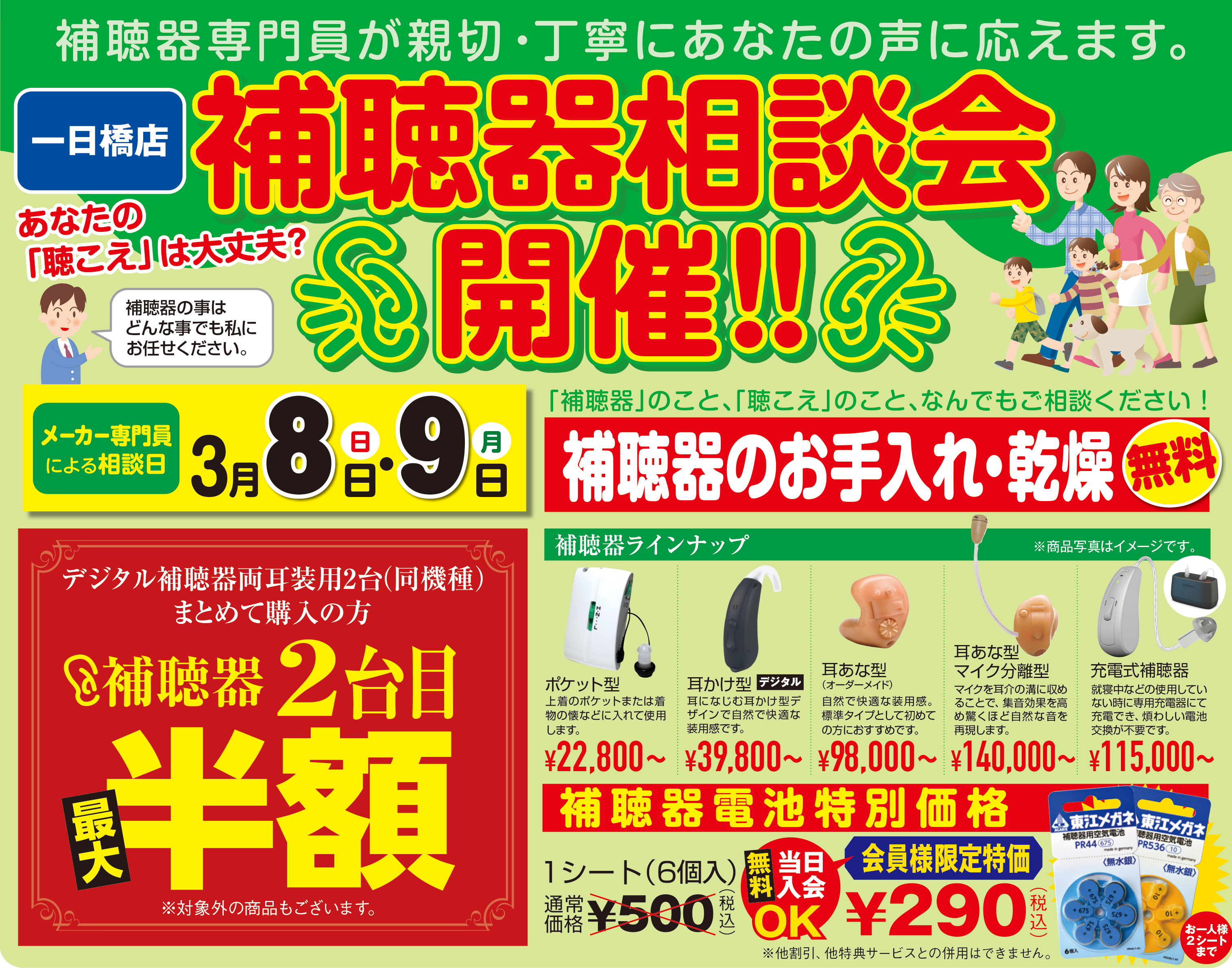 また、3月8日(日)・9日(月)は補聴器のメーカー専門員が来沖!