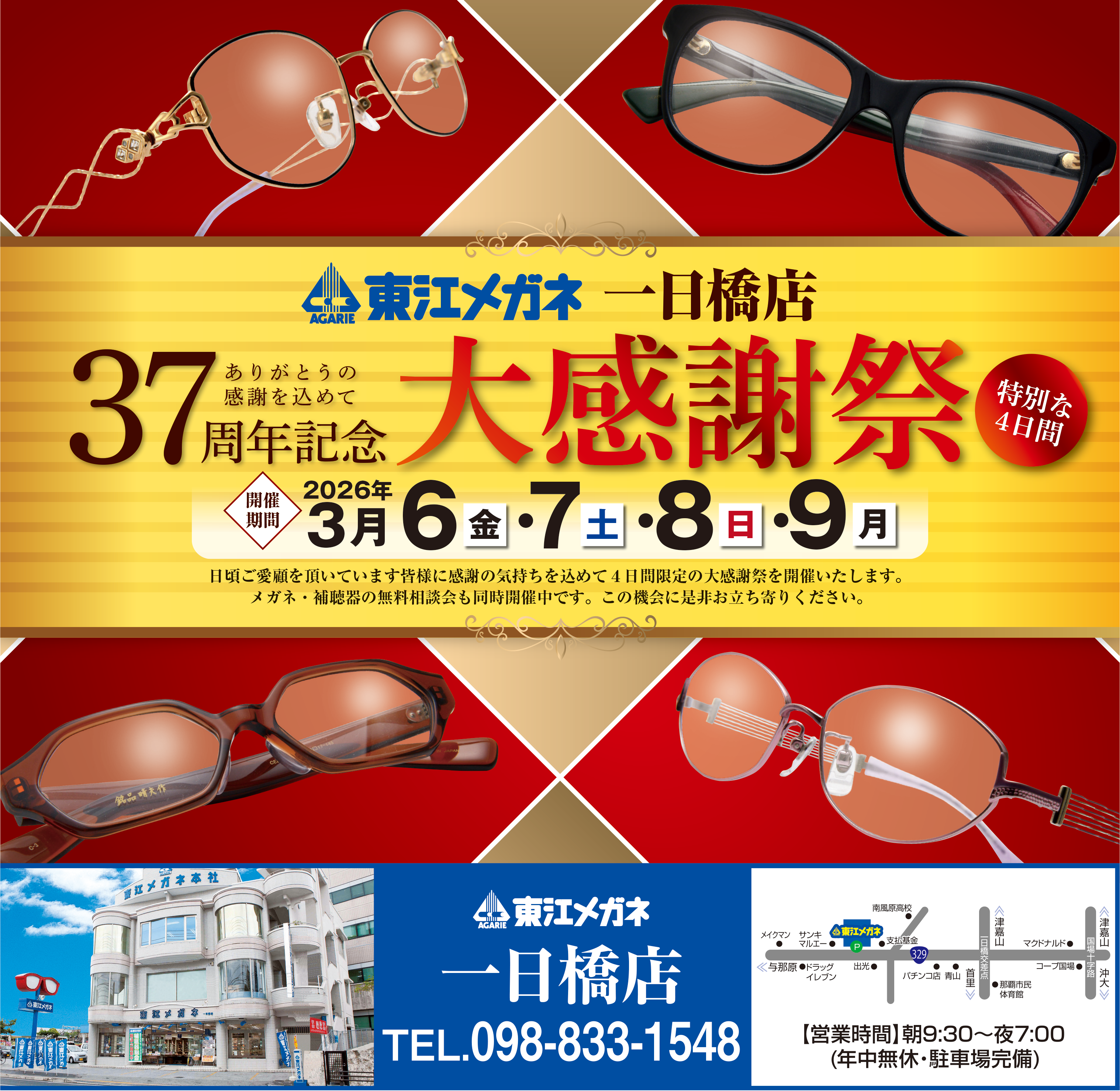 【37周年】東江メガネ 一日橋店『大感謝祭』セール開催♪