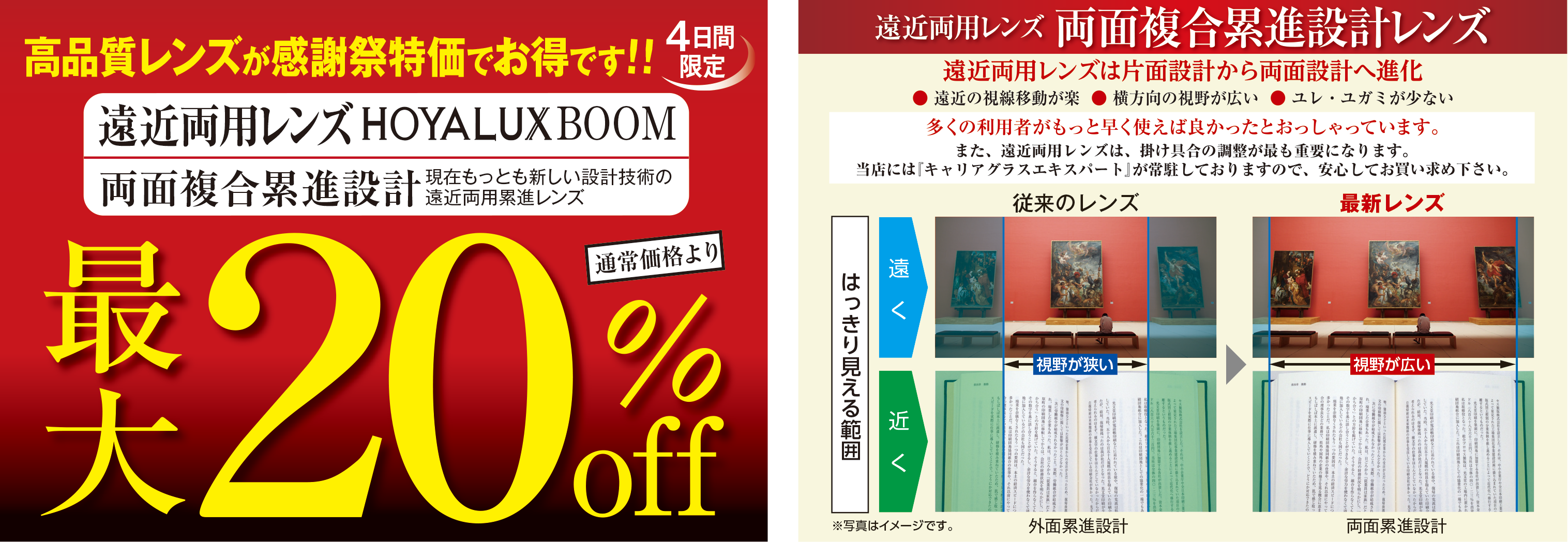 東江メガネ一日橋店では高品質レンズが最大20%OFFとなる特別セールを開催します♪