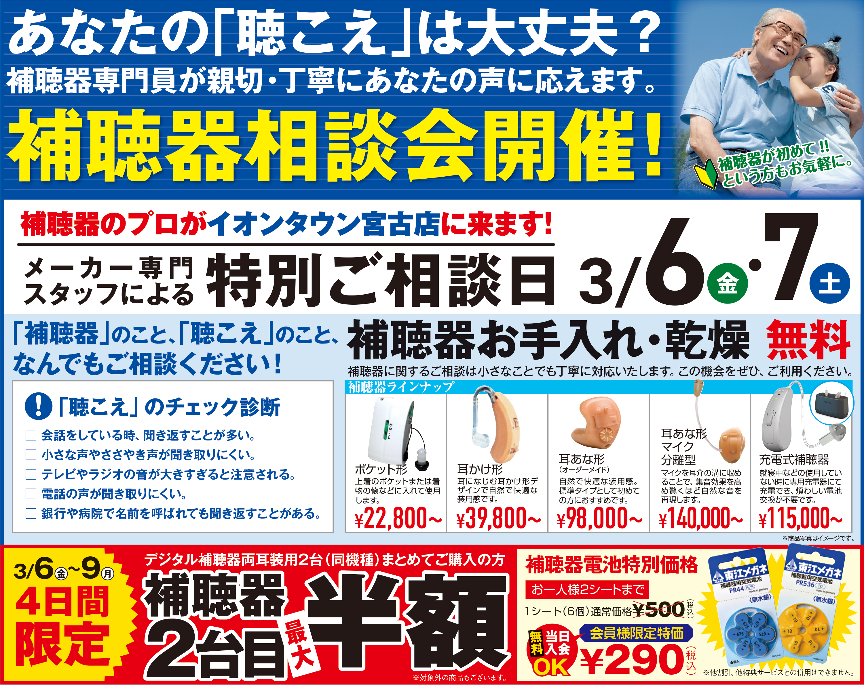 また、3月6日(金)と7日(土)は補聴器のメーカー専門員が来沖!
