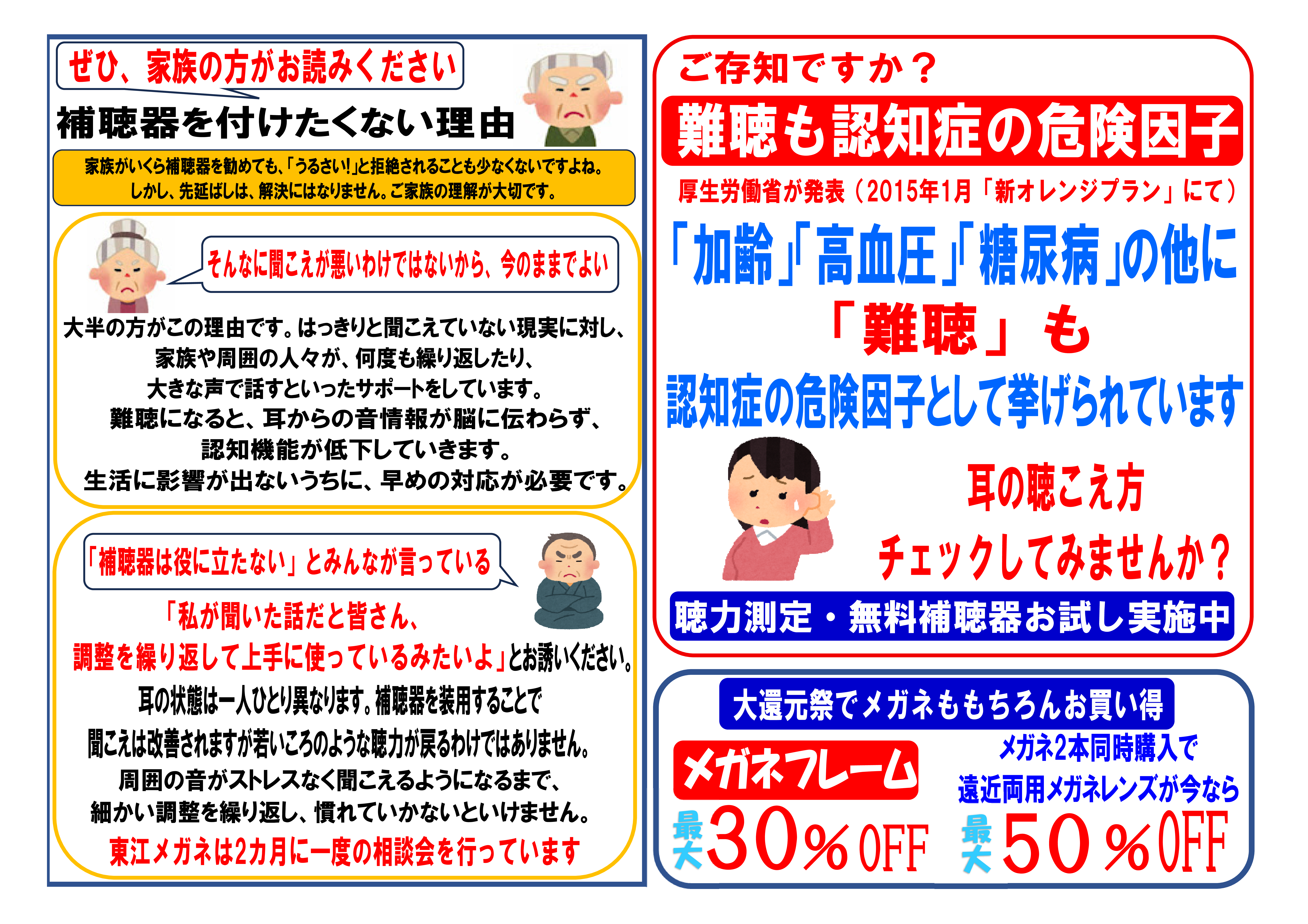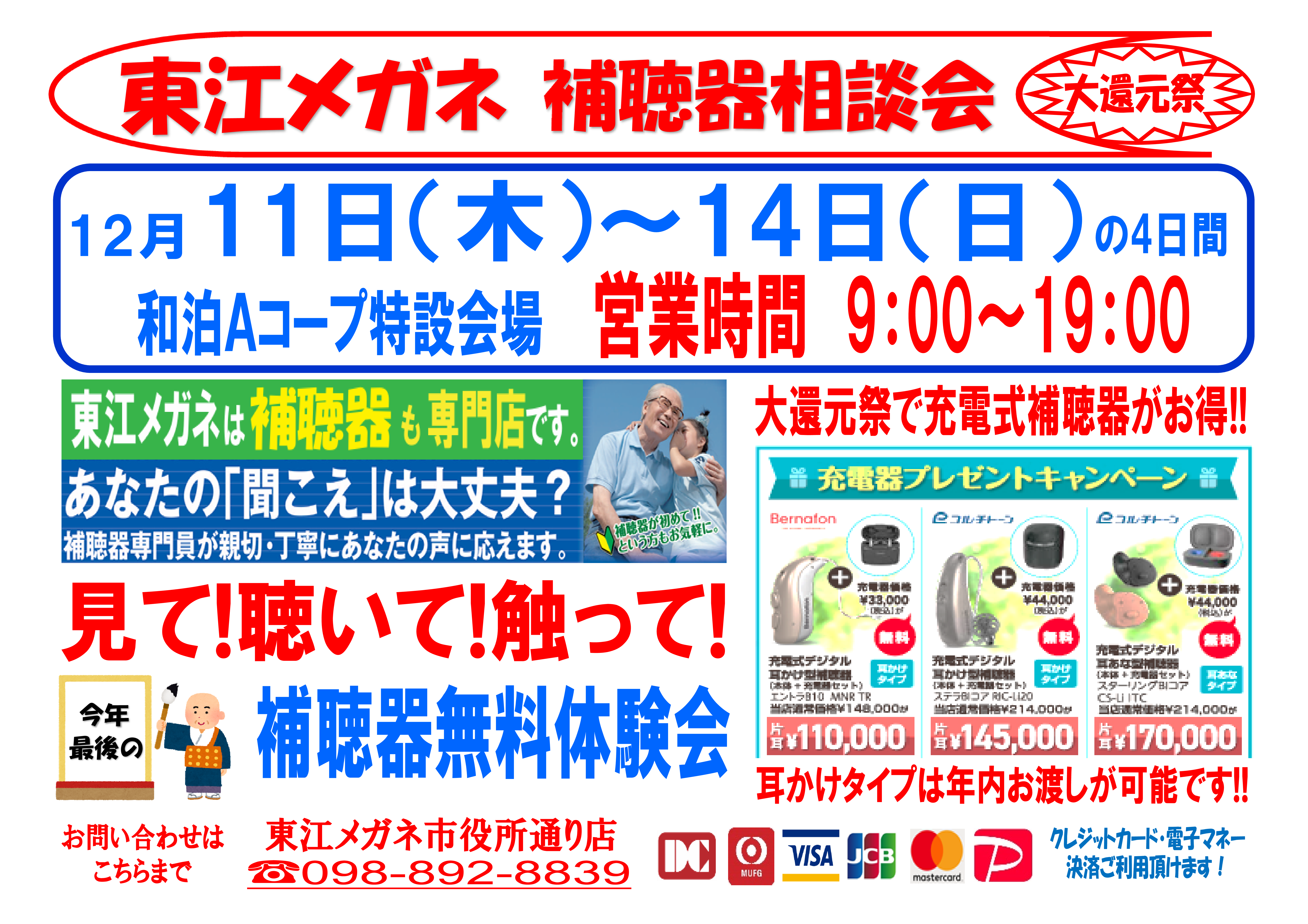 最新機種のご紹介、無料の聴力チェック、試聴体験が可能です。