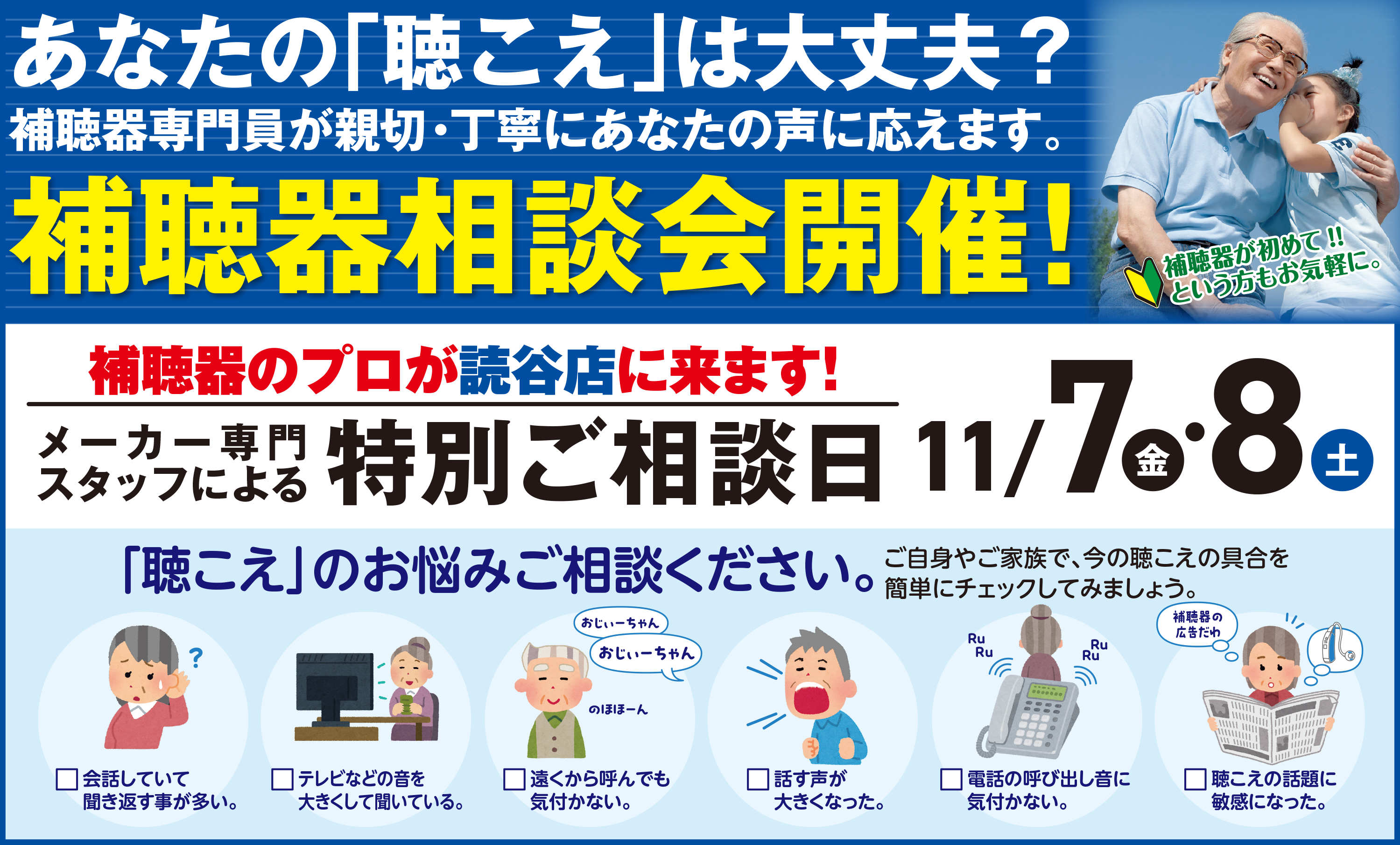 また、11月7日(金)と8日(土)は補聴器のメーカー専門員が来沖!